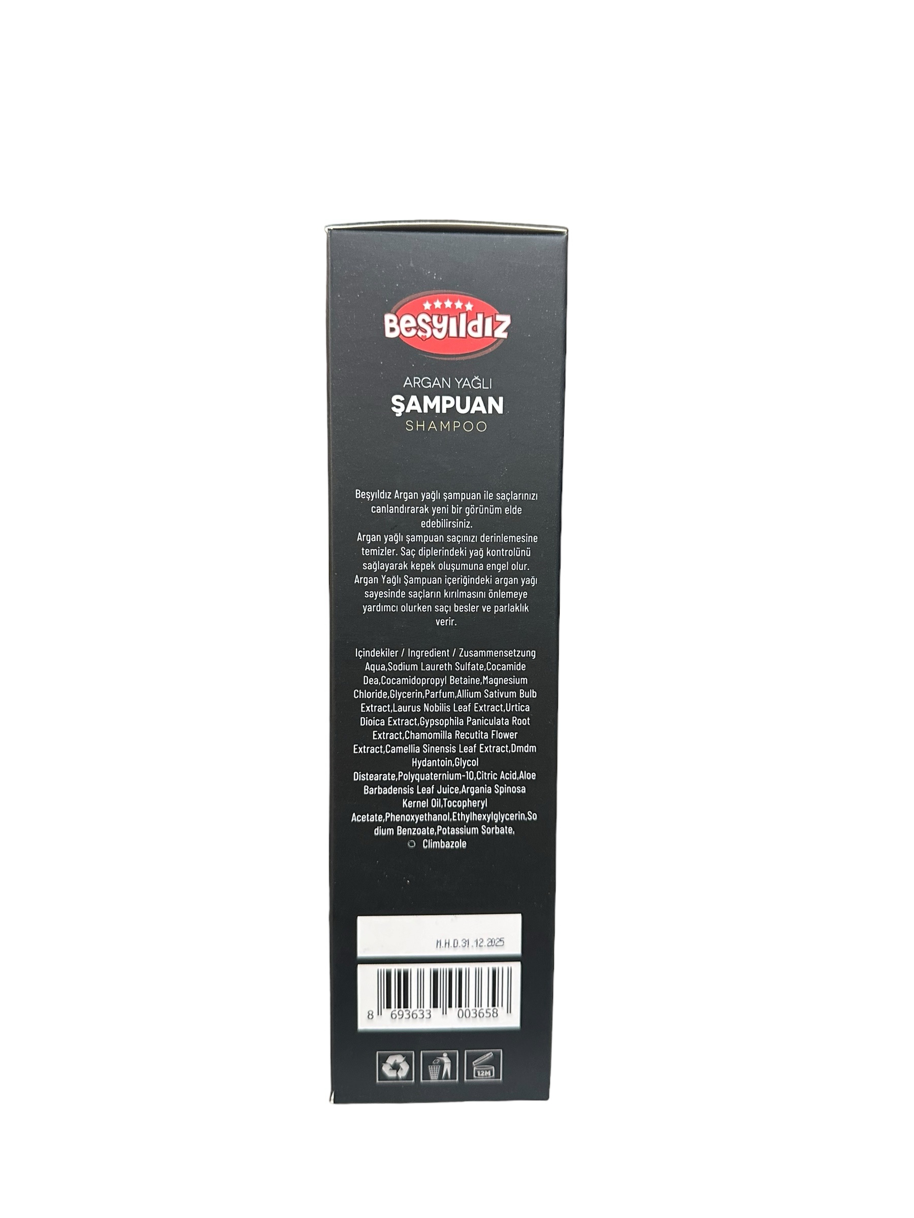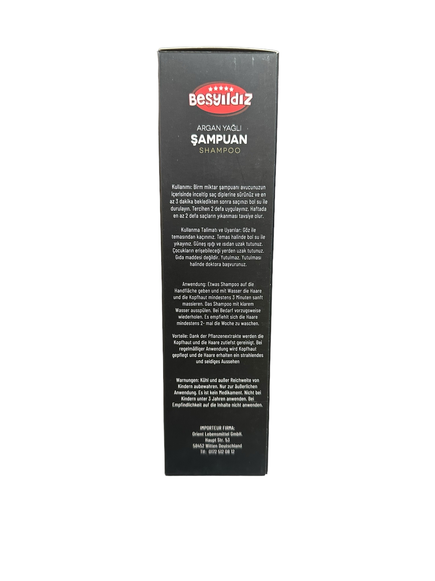 Besyildiz Arganöl Shampoo pflegt das Haar intensiv mit Arganöl, stärkt es von der Wurzel bis zur Spitze und verleiht ihm natürlichen Glanz.