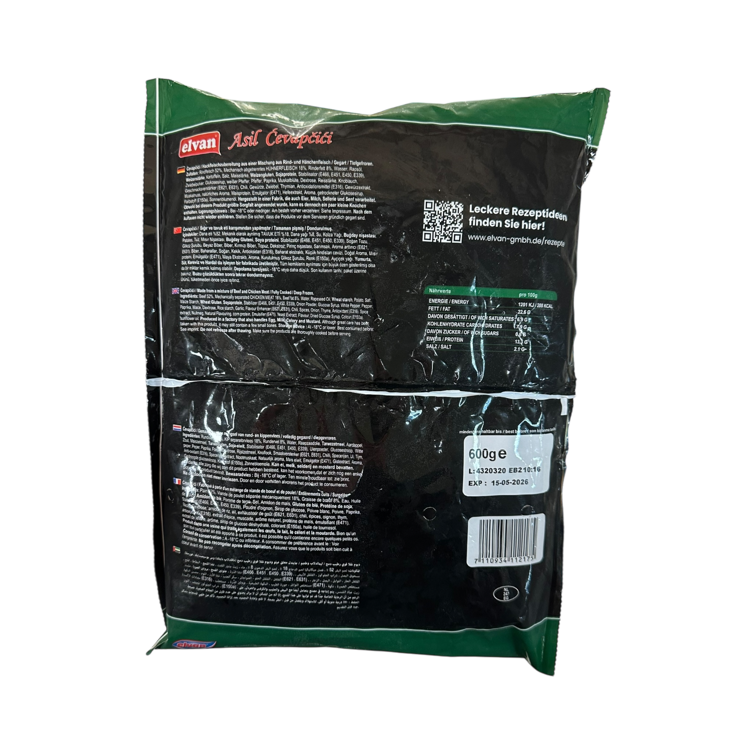 Elvan Cevapcici sind saftige, würzige Fleischröllchen aus hochwertigem Rind- und Hühnerfleisch, perfekt gewürzt und sofort tiefgekühlt. Ideal zum Grillen oder Braten – für ein authentisches Geschmackserlebnis der Balkan-Küche, das schnell und einfach zubereitet werden kann.