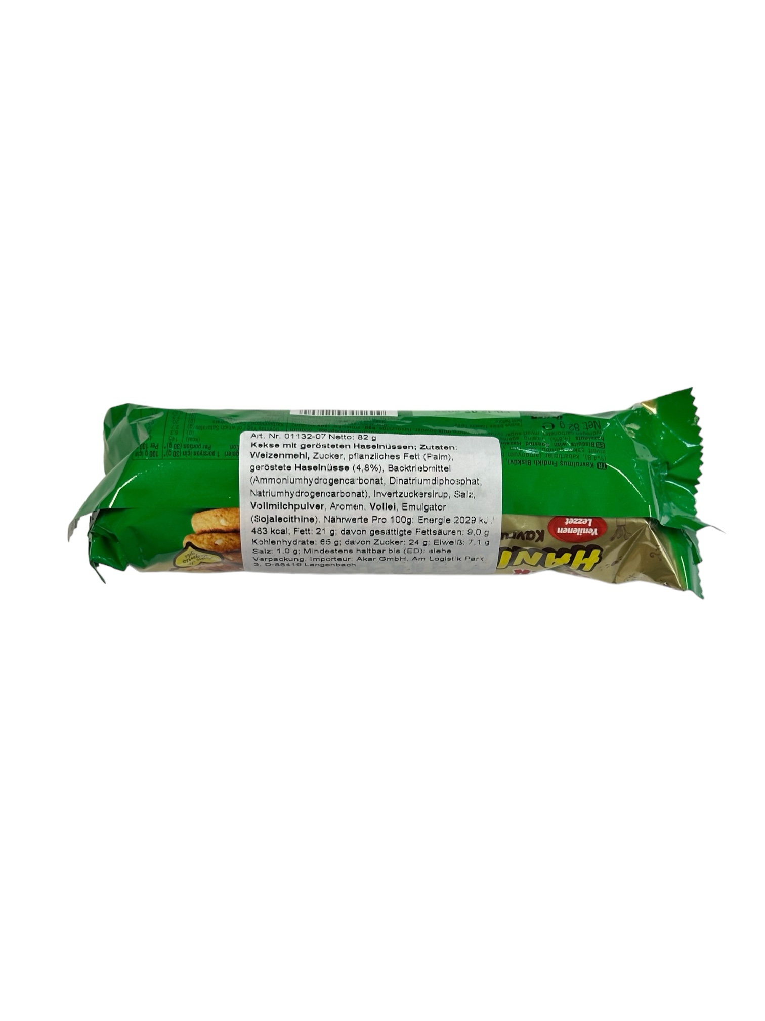 Weizenmehl, Zucker, pflanzliches Öl (Palm), Haselnüsse (4,8 %), Invertzuckersirup, Backtriebmittel (Ammoniumhydrogencarbonat, Natriumhydrogencarbonat, Dinatriumdiphosphat), Salz, Vollmilchpulver, Emulgator (Sojalecithin), Aromen, Ei.