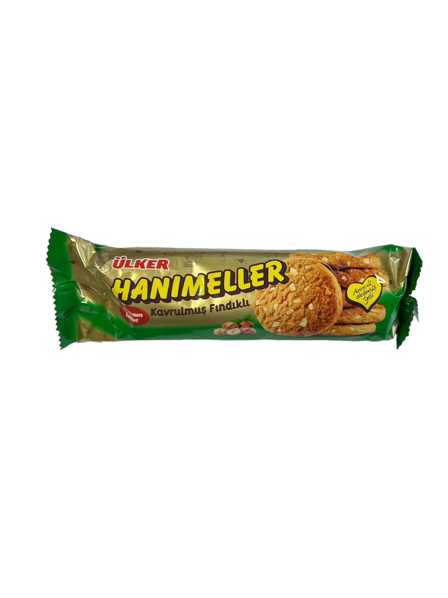 Die Ülker Hanımeller Haselnusskekse sind zarte Kekse, die mit einer köstlichen Haselnusscreme gefüllt sind. Ideal für eine süße Auszeit oder als Begleiter zu einer Tasse Tee oder Kaffee.