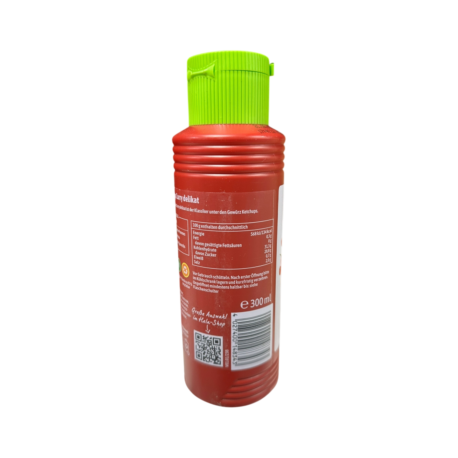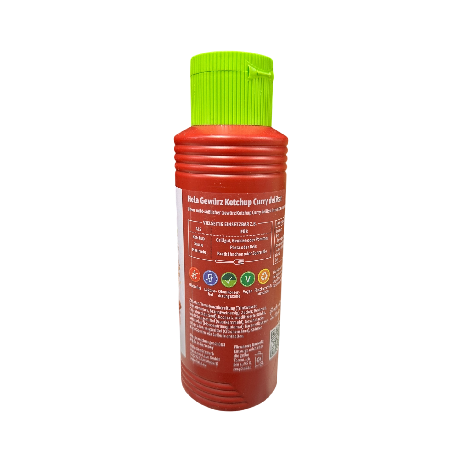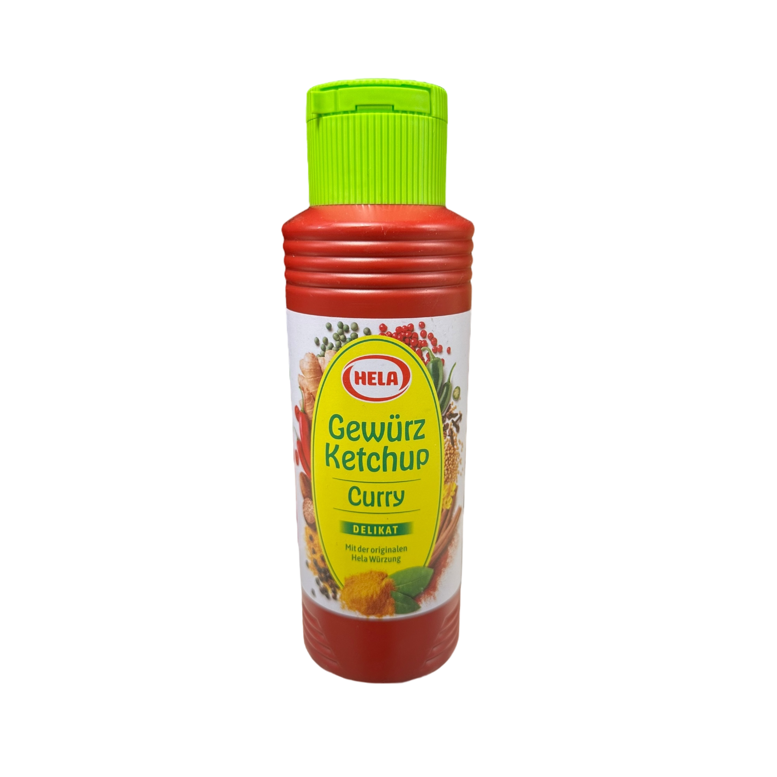Hela Gewürz Ketchup Curry – eine würzige Kombination aus Tomaten und Curry, ideal zu Wurst, Pommes oder als Dip für exotische Gerichte.